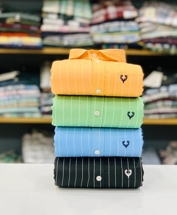Stay stylish and comfortable with our Lining Shirt Inspired By Allen Solly, designed with vertical pinstripes and signature antler embroidery. These shirts strike the perfect balance between sophistication and everyday wearability. Ideal for office days or smart-casual outings.